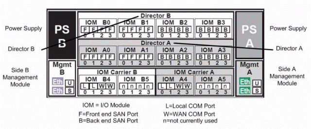 而Director彼此之間的溝通,則是透過內部Connectrix DS-300B交換器,以兩條獨立的FC通道(COM)連接,避開已經相當忙碌的I/O傳輸通道。