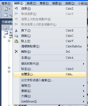在開發的過程中經常需要搜尋專案中的程式碼或資料,在Visual Studio中最厲害的就是擁有強大的搜尋機制,而程式碼快速搜尋的機制在Visual Studio 2010中更是進一步強化與改進,巡覽至功能即為此例,讓熟悉這些操作的開發人員將如水中蛟龍般自由自在的悠遊在程式碼之間。當專案被開啟後,Visual Studio 2010會替所有檔案建立索引,以加速搜尋速度。
