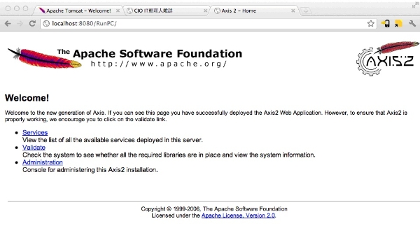 填入。如果你看到Axis2 runtime loaded successfully,即是已經完成了Axis2的組態,則我們就可以準備下一個元件的安裝。