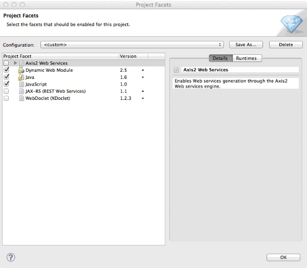 ▲ 圖9 設定Web Service的runtime是Apache Axis2
