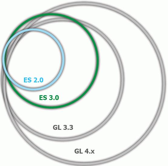 ▲ 圖1 OpenGL ES 3.0與其他OpenGL版本之關係(資料來源: Khronos group)。
