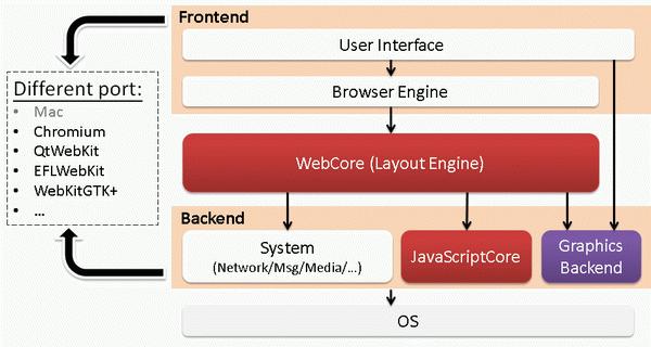 Web網頁通常透過瀏覽器解析後呈現給消費者。瀏覽器的核心是一個Layout引擎,負責HTML文件格式的計算規劃與顯示。Apple Safari和Google Chrome,使用的是開放原始碼套件 - WebKit。WebKit也被廣泛的應用在其他瀏覽器上,如:海豚瀏覽器、Konqueror、Maxthon等等。WebKit的結構相當的有組織性,如下圖所示的架構圖: