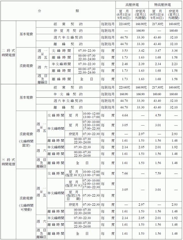 ▲ 台灣電力公司高壓、特高壓電價表 中華民國101年6月10日實施
