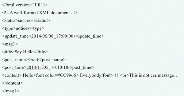 Web Service 是一種建構在伺服器上以服務為導向的技術,與傳統Service不同的是Web Service並非主動的發出Request,而是於伺服器上被動等待Request並發出Response,而Web Service是根據SOAP協議傳遞XML用以支援網路上不同機器互相間的操作,XML(可延伸標記式語言)能標記電腦所能理解的符號,只要Client 與 Server 之間互相定義好內容即可用於溝通不同的需求,如訊息傳遞、遠端控制等,使得系統伺服主機不用在為了不同的設備而使用不同的傳遞語言,以下為設備與伺服主機使用XML傳遞的一個範例,當設備若是接受到此XML即可會根據XML的各個Tag依序顯示內容。