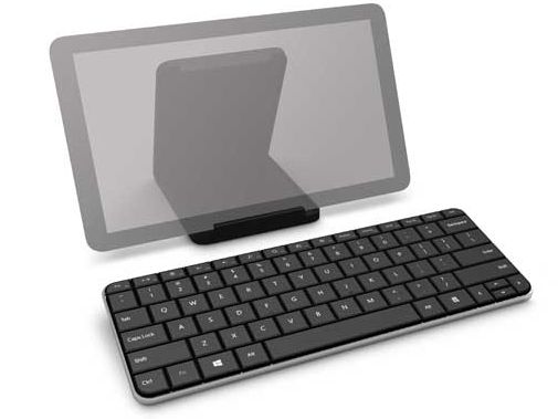 79.95美元的Microsoft Wedge Mobile Keyboard是為平板電腦使用者所設計的正常大小鍵盤,具有針對Windows 8所設計的特殊快速鍵,提供使用者在Windows 8作業系統中快速存取搜尋、系統設定與Metro使用者介面等動作。它使用藍牙進行通訊,並附有蓋子可以用來關掉鍵盤增加電池壽命。蓋子還可以用來讓平板電腦站立。